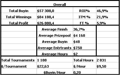 Сегодня 2-й игровой день в этом году. Первые 2-финалки и 1-е 1-е место, в боссмедии 25е фриз на 91 тел. И первое разочарование. В покерстарсе первый шанс неплохо доехать в 90к гранд, 7ч игры AK<AQ и 16-е место.