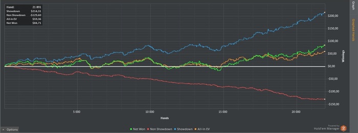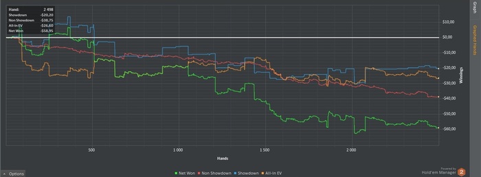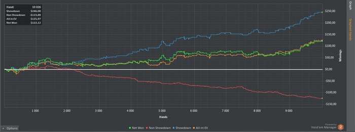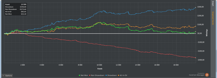Из этой ситуации вижу 2 выхода. Первый, просто продолжать играть по фану, забить на все, и даже не думать о выигрыше. Второй, каким то образом изменить свой характер, или хотя бы научиться блокировать свои эмоции, что будет выражаться в 100% фолдах, где я сам вижу что бит, и в отсутствии глупых мувов.