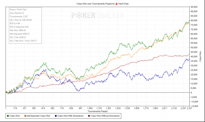 Если честно, думаю можно и что-нибудь интересное писать помимо графиков. Аповые графики это конечно круто, но иногда сильно загоняюсь и покер начинает бесить. Я что-то слышал насчёт 5 лет, что мол через 5 лет начинается отвращение от игры при постоянном гринде, ну не знаю. Я люблю эту игру, но когда дело доходит до того, что мне надо себя заставлять - всё это уходит и остаётся сплошной негатив, а в таких условиях играть я не очень-то и люблю мягко говоря. Поэтому не ставлю себе каких-то задротских целей, благо пока нет необходимости зарабатывать себе на жизнь, так что не вижу смысла заставлять себя и играть когда этого не хочется делать, всё же сейчас это для меня развлечение + доход, а не наоборот.