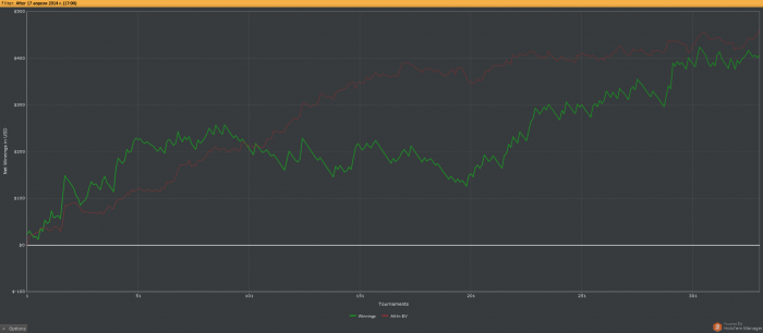 сегодня хм глюканул и сказал мне что за топ2 на 15ке я получил 160уе , к сожалению касса с этим не согласилась . пришлось удалить этот турик. Вот турбины с 17 апреля + штук 5 регспидов которые играл в первый день