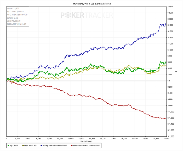 bigbadmouse, я просто никогда не видел винрейт ниже 3бб/100 на такой дистанции,при общей выборке около 300К рук по всем лимитам. Такие результаты бывают,только тогда,когда я реально недостаточно качественно играю.