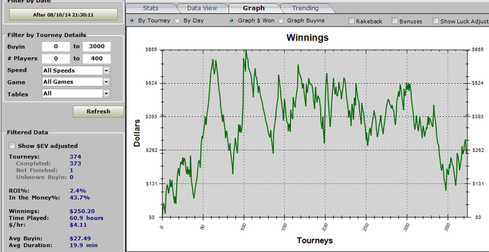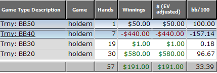По собственным ощущениям, играть я стал на порядок лучше, чем, скажем, пару месяцев назад. Последние примерно 150 турниров играл в 4 стола, при этом не скатываясь в режим автопилота, чего раньше мне не удавалось.