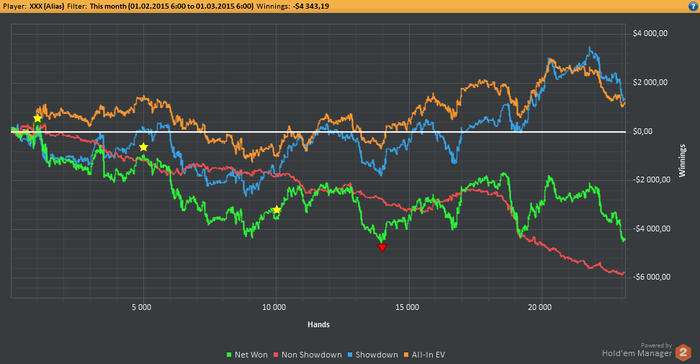 Сейчас делаю перерыв, надо что то кардинально менять. Сейчас вижу основную проблему в психологии, над ней и буду работать. читаю книгу "покер-игры разума", есть интересные моменты, буду применять.