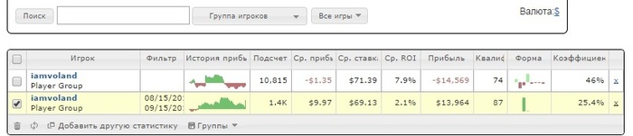 На ней, достаточно полный алиас, по всем моим никам. Как видно, за месяц (взят промежуток между сериями), сыграно 1.4к турниров, однако турбо значительно меньше, чем на общем алиасе. Дело в том, что под серию, я выводил деньги, но АБИ не хотел сильно снижать, поэтому снизил дисперсию улучшением состава турниров. Иначе говоря, моя загрузка была неполной, из за того, что я играл медленные турниры и так почти все, что и раньше, но отказался от части турбо.