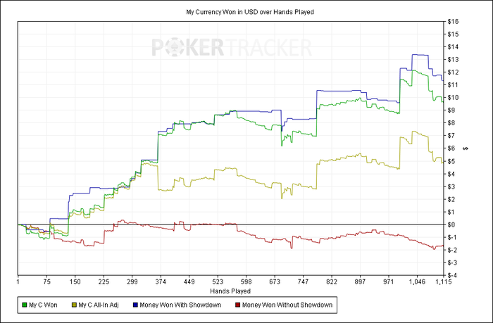 Сессия 1. Утро) - я стал лениться, просыпаться позже(( 1111 рук. Вот с этой рукой - лузово??? Microgaming - €0.02 NL (6 max) - Holdem - 5 players Hand converted by PokerTracker 4
