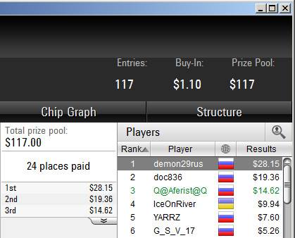 Сегодня 4 турика по 0.25. В одном 6 место. Во втором 1-место.