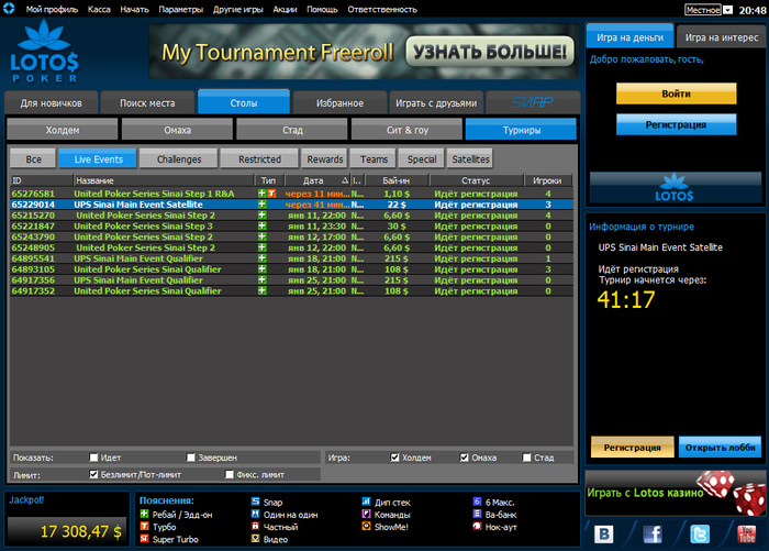 Зарегистрировался в руме Lotos Poker, хочу принять участие в сателлитах на данную серию, есть пара вопросов к Вам:
