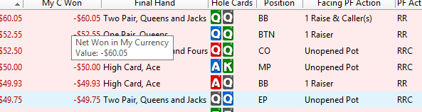 Хм, хотя сегодня: Это все префлоп сдвиги. Руки соперников соответственно АА АА АА КК АК КК Еще запомнил, что в трех раздачах удалось выкинуть префлоп в экшенах АК, АК, ДД и проиграть всего 40бб-показали на ШД выигравшие руки соответственно: КК, АА, АА Это за последние 3к рук. Вот это палево