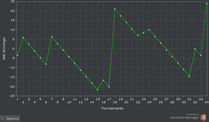 Сука, все таки нельзя играть в покер сонным. Сегодня был 1 глубокий проход в ребайнике, но не срослось. В целом играл неплохо.