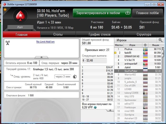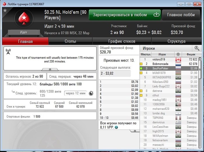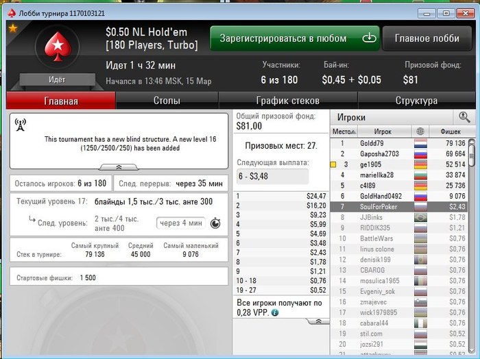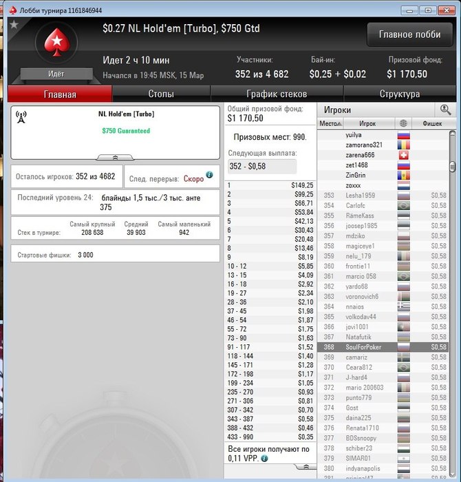 Набил стек, дело к призам идёт, и тут меня на ровном месте переезжает неадекват < Хрен с ним, раскрутился заново, начались призы и снова меня едут снизу < На обрывки стека принял пуш шорта с CO, так и тут без шансов