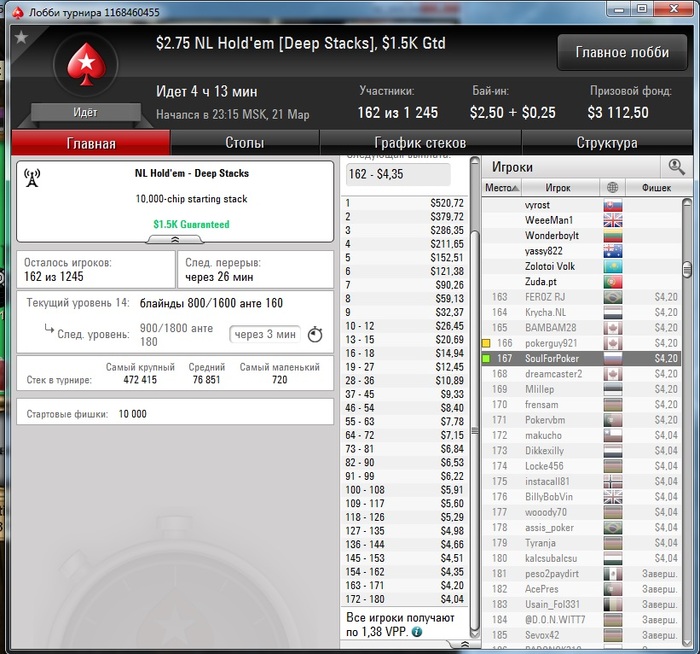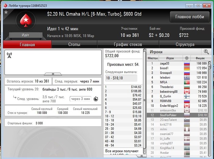 В 888 через два сателлита отобрался с 25 центов на мегадазн (воскресный мажор) за 12 баксов, 2 часа отыграл, только регистрация поздняя закончилась, всё, думаю, теперь путь к призам, но: я на МБ, до меня все пас, я рейз с , биг на ББ олын, ясно, что он блефует, я колл, он открывает и ловит своего вальта на тёрне Ну вот как так то А до этого в этом же мтт меня с полным мусором с блайнда сбрасывали, я на неплохих картах заколил, но опп тоже вальта поймал на доске (проиграл половину стека). Что за содомия Вместе с сатами 6 часов игры и такой глупейший переезд