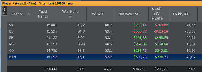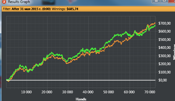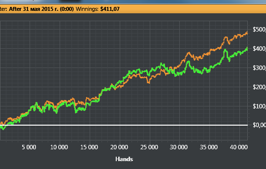 Давно не писал) Катал мало в этом месяце, около 30к рук. Все таки проблем немного прибавилось) Работаю над теорией, уменьшил кол-во столов, до 15-16. Стараюсь извлекать максимальное велью с каждой руки. Правда из-за этого тильтовать много стал, откуда вытекает ошибок на 4-5бб/100. (раньше времени поплакать над переездами не было) Но все же расту потихоньку, сейчас осталось подлатать игру на блайндах, и скорее всего попробую лимиты повыше.