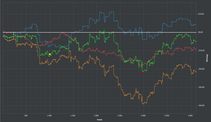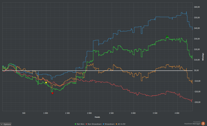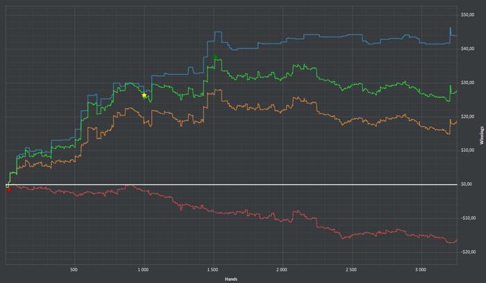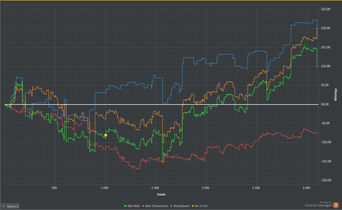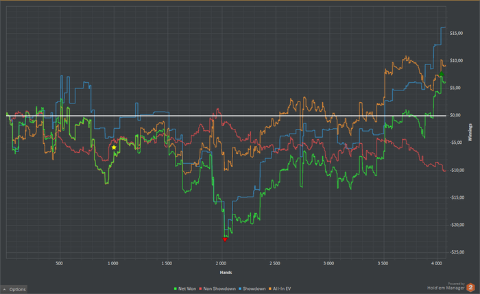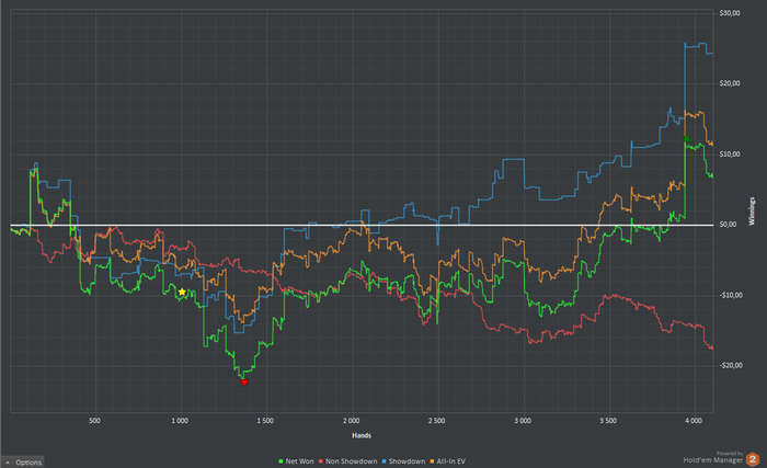 Я играл, как самый последний долбоеб. Не то что бы в другие дни, я играл хорошо или хотя бы нормально, но сегодня я, определенно чемпион долбоебов. Сегодняшний день, вобрал в себя всё ужасное, что присутствует в моей игре. И нелепые коллы и всевозможные блеф пуши и так далее и тому подобное. Благо что сегодня, хоть покерстарс и его "ран ит твайс" меня хорошенько выручили. Когда я трижды выставился снизу и отскочил на втором борде, я уже понял что нужно что то менять в своей игре. Но как то чёт не срослось... Но несмотря на то, что день в минус, я доволен результатом, так как всё должно было закончится, куда печальнее...