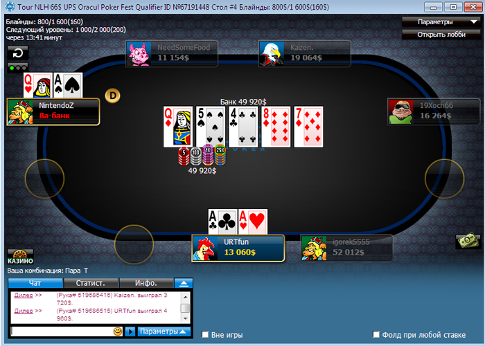 А я - удвоил "NeedSomeFood" (одного из давешних победителей отборов LotosPoker). Увы, < .