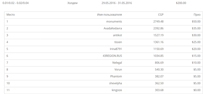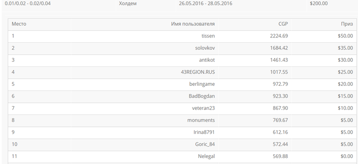 На ПокерГранте начиналась как раз акция кеш-спринт, или чё-то типа того. В общем играя нл2, на ней я крутанулся до 450$.