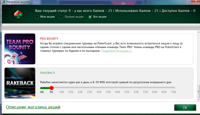 Набрал 10 000 CGP и теперь у меня статус 9 и рейкбек 25%. . То есть, другими словами, я заплатил 100 баксов рейком, чтобы получить 25% рейкбека в руме где нет игры. Во я долбоёб, да? Но тут оказалось не всё так просто как я думал. РБ у них выглядит вот так: