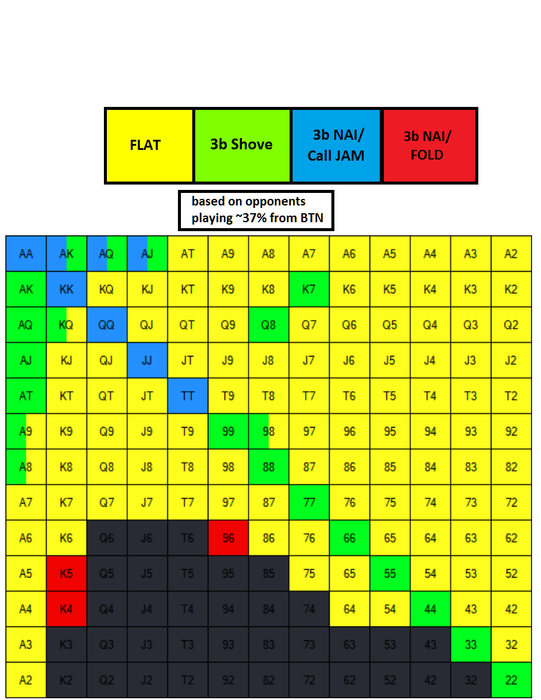 Romashka1983, Потому что даже АТо имеет не так много эквити против ренжа кола. Пополам играется от кола и 3бетпуша. Все, что слабее этих рук - это руки, которые превращаются в блеф. Если А8о - это блеф, то надо надеяться, что опп либо оверфолдит, либо оверопенит префлоп.
