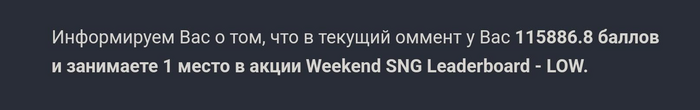 Решил поучаствовать в викенд лидерборде. Было отыграно 437 туриков за два дня и вуаля: