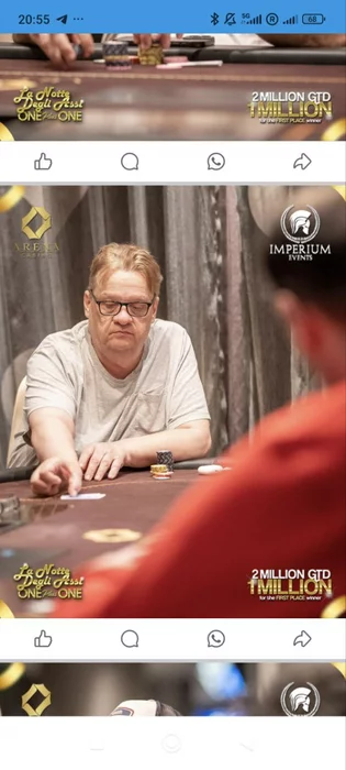 Другой человек за моим столом начал ругаться, что если бы знал, что второй день не гарантия итм, то у него была бы другая стратегия, и он уже давно запихался бы, а не пытался свои 10 бб протащить.