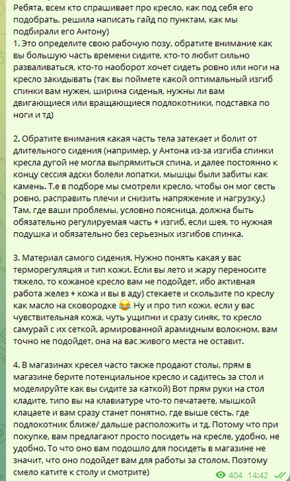 Советы под спойлером по выбору кресла, возможно кому-то пригодится. Мне выбирали основательно и не быстро.