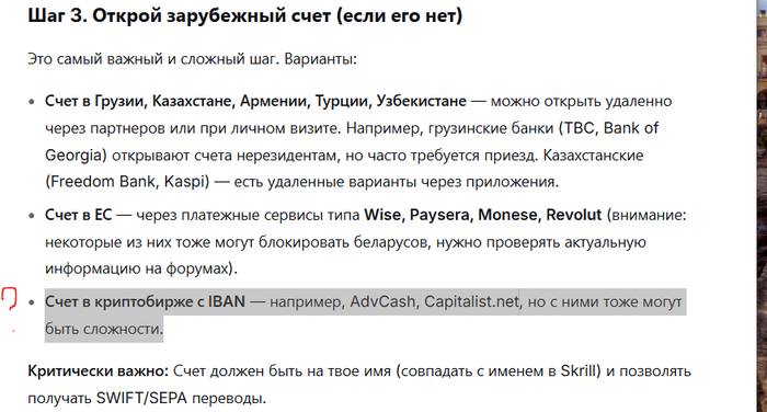 Вариант с криптой идеальный как по мне для россиян 100%, для белорусов изучить закон по крипте, т.к. в белую оформляешься в самом банке для получения счёта.