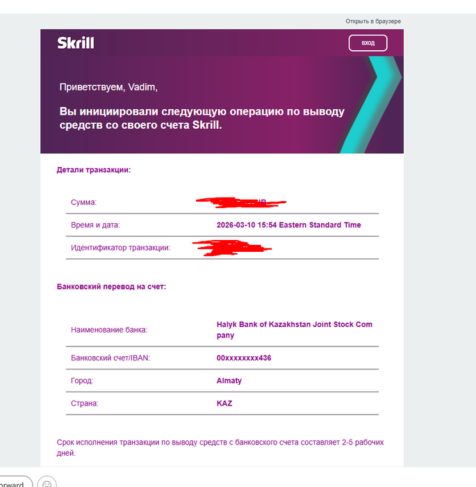 vadrou @ 10.03.26Я сделал вывод на халык банк в евро. Но могут не прийти, потом только узнал что перевод в валюте идут через корреспондентские счета (через банки прокладки,которые берут комиссию) а у них другой свифт. В такой цепочке валютные перевод может не пройти. Поэтому лучше делать перевод на счет в местной валюте.