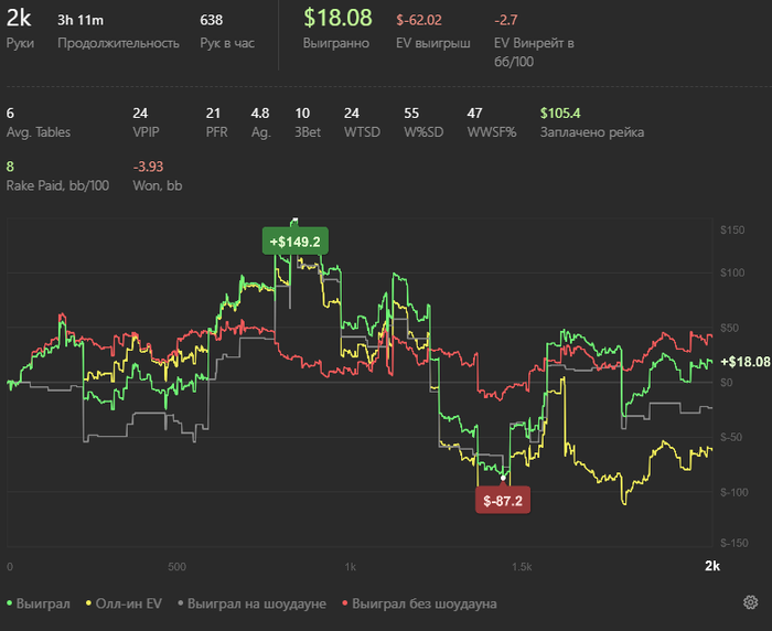 Играл хорошо, потом как рубильник переключили, и в 2 аута начали фиши перезжать, по типу таких раздач,