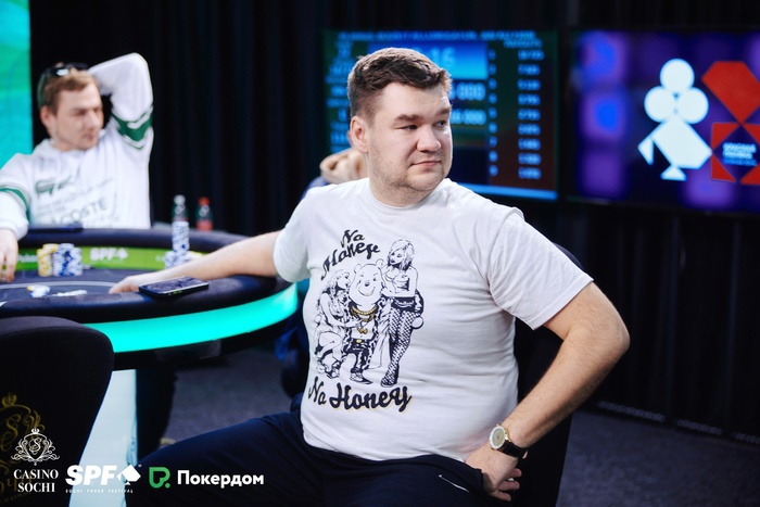 Павел Арзамасцев с самым коротким стеком в 53,000 запушил с катоффа, Станислав Киселев (170,000) уравнял на SB с .