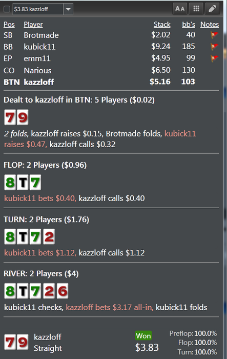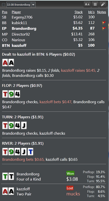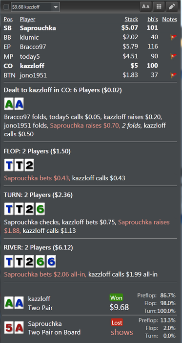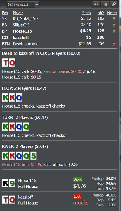 Дальше играю против адекватного по статам,но с маленькой выборкой. И все вроде в раздаче нормально,но вспоминаю с какой скоростью опять же колю овербет на ривере и становится тошно в очередной раз.