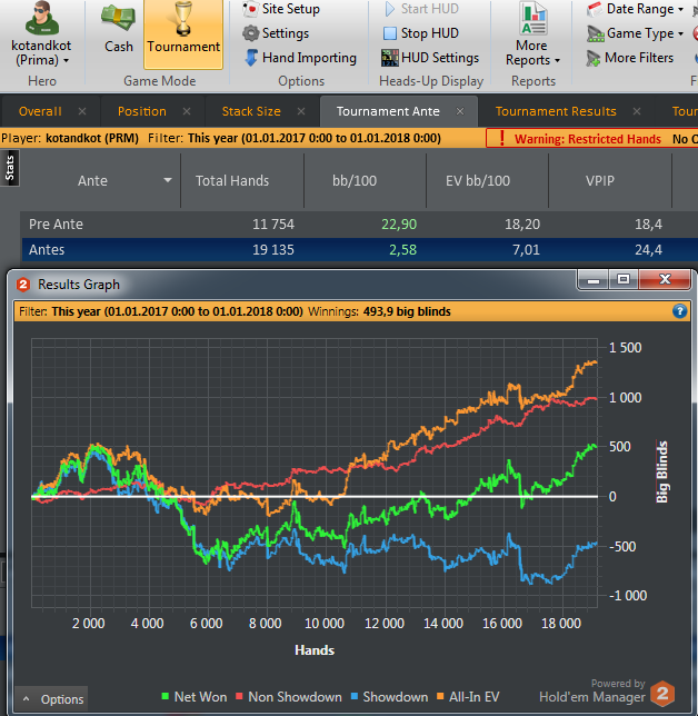 ad0nay, да ничего интересного, там определённый спектр рук и досок пробовал играть подругому, отсюда там около 5-7 стат тип рейз си бет, чек рейз, лим трибет, донк бет, кол опен поздних поз возросли почти в 1.5- 2 раза. проблема в том ещё, что многие "реги" ред стара являются телефонами как выяснилось, так что с такими ребятами первая страта с АА понадёжнее.
