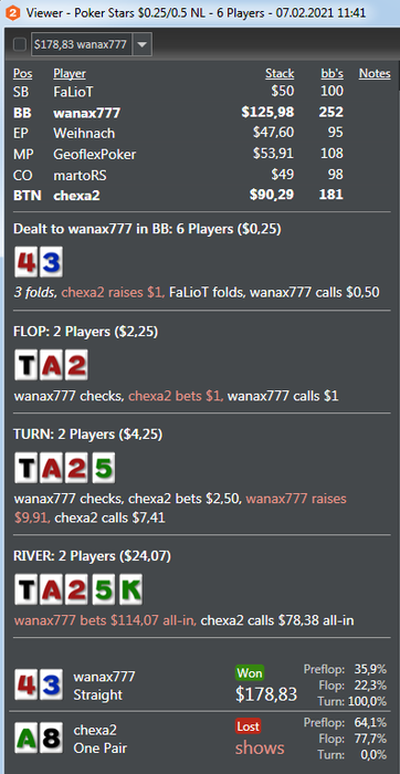 BombaZota13 @ 1.2.2021 BAHAKC, Интересно разбираешь, но лид пуш по риверу в такую доску по туз валет колить без блокера на кресту это не самая хорошая идея )) У тебя ещё и статы на него есть с 55.5 WWSD