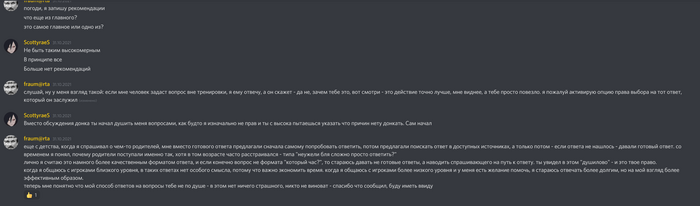 целиком это обсуждение выкладывать не буду, потому что придется делать слишком много скринов, его можно найти при желании в канале 100s (или скотти может выложить, если захочет - вдруг там где-то обосрал) - если вкратце, я был одним из немногих кто категорично настаивал, что киво играет без подсказчика. Получается, сначала защищал, потом обосрал. Для баланса наверное.
