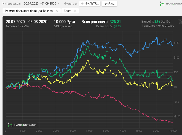 Джентльмены, всех приветствую. Хочу похвалиться своим первым опытом бекинга. Я лазил по джипси и забрел в соответствующий раздел. Мне стало интересно, что там есть за предложения. Почти все предложения были о покупке байина от мтт-шников. Их я сразу отмел, так как это больше похоже на ставку на скачках, если ты не видел коней. Я продолжил поиски. Регстолы никто играть не предлагал. Это, конечно, был бы самый простой выбор для такого начинающего бекера, как я)) Всё просто - смотрим статистику, графики и понимаем, что чувак плюсовый, да и еще (возможно) хочет играть лимит ниже рабочего. Верняк) Но никто так делать не хотел. Видимо у всех регов, которые катают рег-столы с БР проблем нет (что было бы логично). И тогда я наткнулся на предложение от пользователя simqkevich, который хотел гонять зум нл10. Я изучил что это за игрок, увиденное меня устроило. Также я отметил, что на форуме он человек зареспектованный. Решил надо брать. Соответственно я с ним списался и выделил 130 долларов. И мысленно с ними расстался, так как очень хорошо осознавал, что укатать 13 байинов пусть даже и в зум 10 - проще простого) Но вчера Матвей написал, что отыграл пакет и деньги даже немного преумножились) И даже прислал мне график Я был обрадован, так как обычно все мои финансовые эксперименты в сферах, которых я плохо разбирался начинались с заливона, а тут небольшой, но профит) Хочу соответственно поблагодарить Матвея, который за эти две недели отыграл дистанцию, был ответственным и даже успел сразиться с мини-стриком. А профиту, который я получил за 2 недели могут позавидовать даже американские ценные бумаги (прости их, Господи)