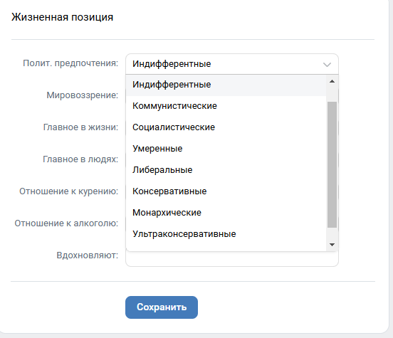Примерно в 2012 году, когда соц. сеть ВКонтакте была чуть ли не на пике своей популярности, я решил "улучшить" свою страничку, и пошел заполнять все возможные графы о себе. В графе "ЖИЗНЕНННАЯ ПОЗИЦИЯ" красовалось множество всевозможных выборов, и я пошел гуглить что каждый из них обозначает.. ну а чо вы хотели от парня ~22 лет?