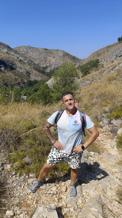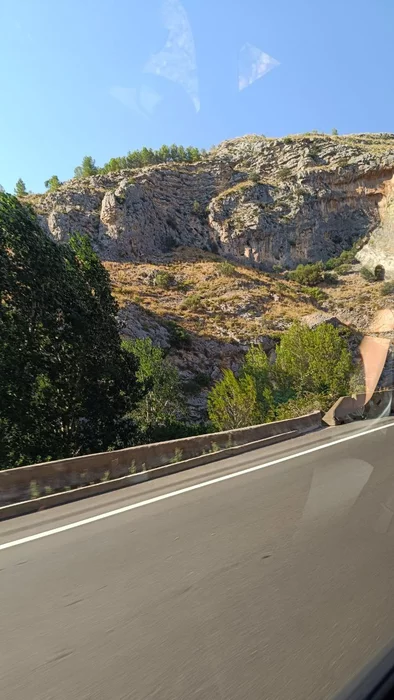 Отъехали мы от Аликанте где-то на час. Ехали среди живописнейших гор. Я, как человек с постсоветским бэкграундом, привык, что гора — это такая голая каменная туша. А тут — будто кто-то тёплым зелёным пледом всё накрыл. Ковёр из кустарников, деревьев, всяких неведомых зелёностей. И всё это подпирает небо. Красота.