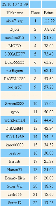 вот так выглядит текущая таблица(иду третим,в зачёте 1 и 2 место):