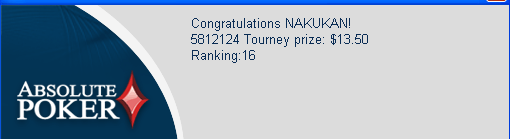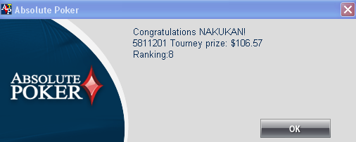 За последнюю неделю, в покере, у меня произошёл залив половины БР на Абсолюте(сейчас около 150$)...ну замазался я в кеш Снова с ним завязка!!!))) На оставшиеся бабосы,буду играть турниры 10$-20$...Собственно или грудь в крестах или ...Задолбали микролимиты!!!!