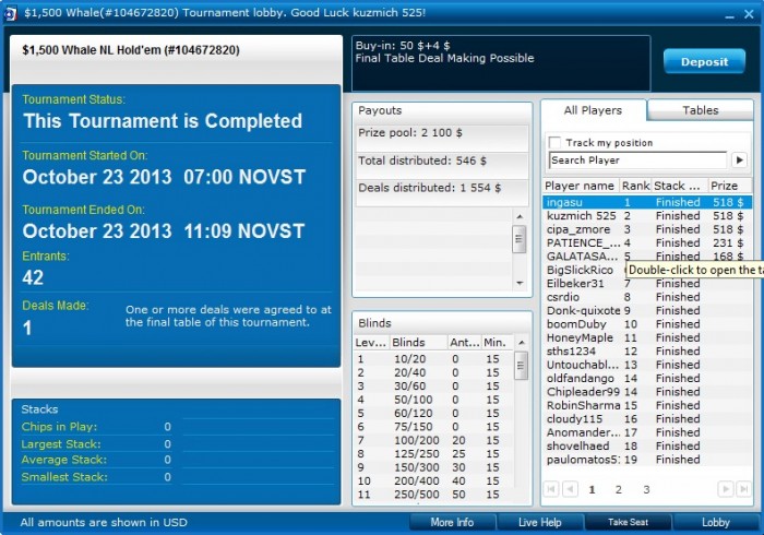 Final Pot: 10,892 Goodvin_spb shows two pair, Tens and Threes