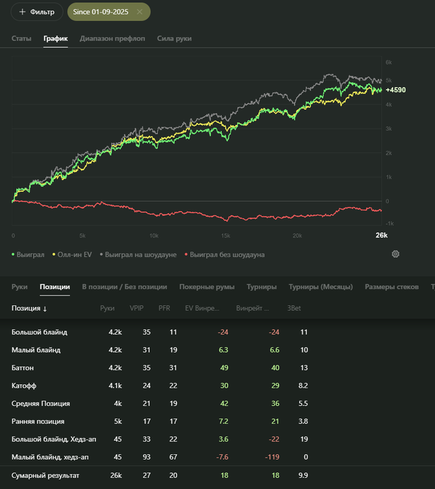 Какой то сложный ран идет. Последние сессии начинаются по стандартному сценарию, я выигрываю пару алынов с QQ vs AK или около того, получаю перебор в 400бб, и к концу сессии, в дипранах, дистанция все возвращает на свои места и эти 400бб я возвращаю людям, но по чуть чуть примерно в виде 20 подряд проигранных монеток.