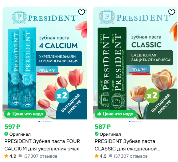 Всякие отбеливающие, для чувствительных зубов и прочие пасты как раз и зависят от RDA (больше песчинка больше сполировывает эмаль, меньше песчинка - более нежная. схема как с наждачкой)