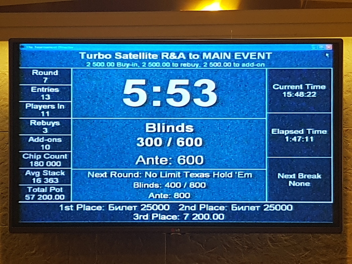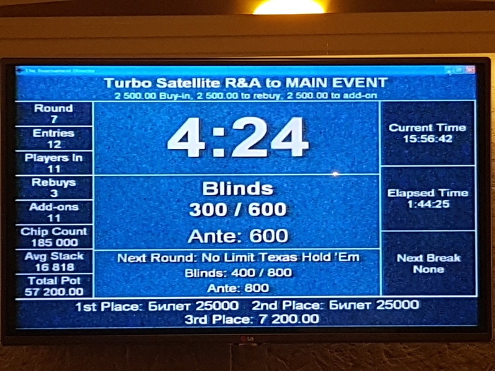 14:00 Satellite to MAIN EVENT по 2.500₽ GTD 2 билета 17:00 Satellite to CLASSIC R&A по 700₽ GTD 3 билета. 20:00 Турнир CLASSIC R&A по 5.000₽ GTD 300.000₽