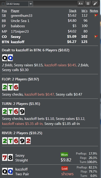 Много еще проиграл в каких то мелких раздачах,где не получалось доезжать в свои ауты. А ниже три приятные раздачи,благодаря которым удалось хоть как то остаться на плаву в этой сессии. Такие оппоненты не могут не радовать,хотя по ощущению их как то меньше и меньше. И в очередной раз задаюсь вопросом где вы там берете оппов ,льющих 60+ бб /100 на вменяемой дистанции. Я таких вижу только с 200-500 рук максимум.
