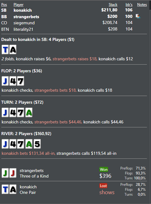 вз агротелефонистой мочи, во второй с любителем в банке на флоп зашли, думаю по тёрну совершил ошибку... возможно и нет