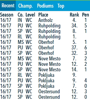 Он идет в общем зачете 7,о каких может идти речь кому за сорок.Понятно что он уже не тот,но он до сих пор входит в 10 сильнейших биатлонистов мира. Думаю на ЧМ у него хорошие шансы выиграть медаль(помимо эстафеты).