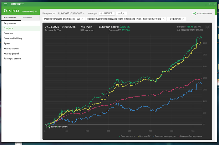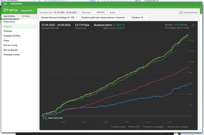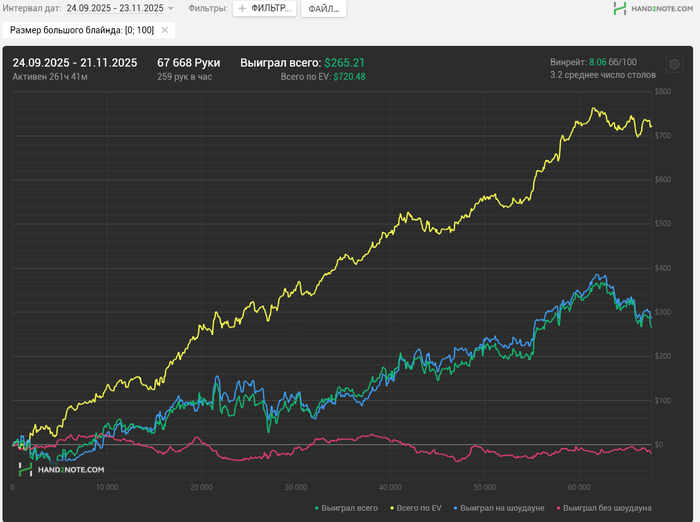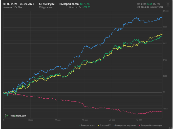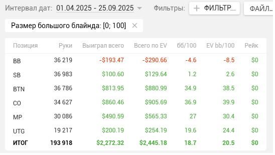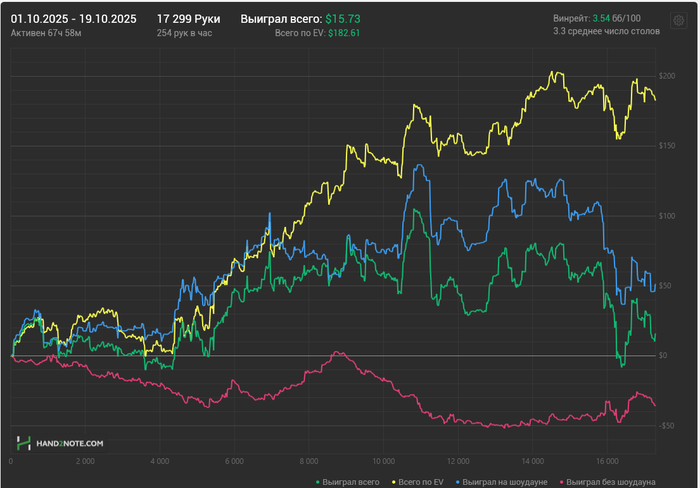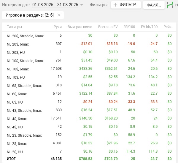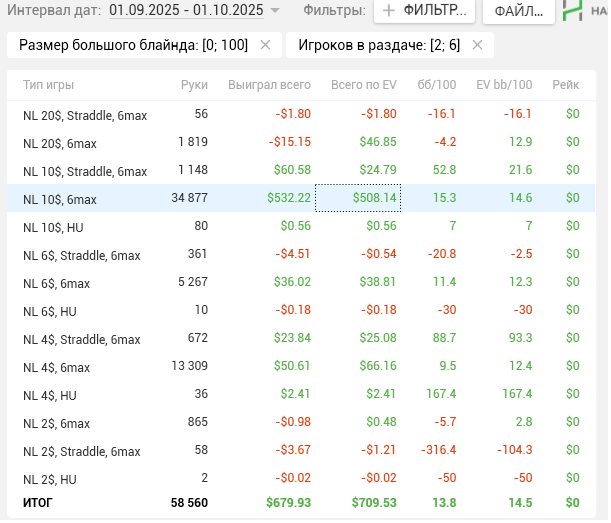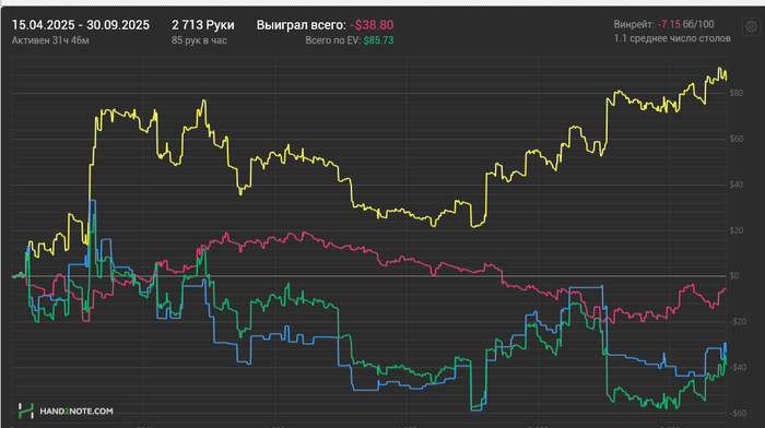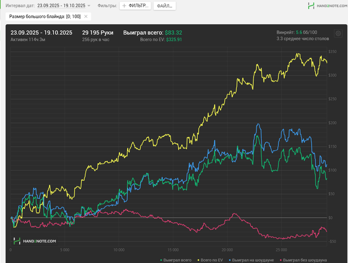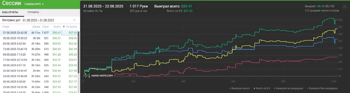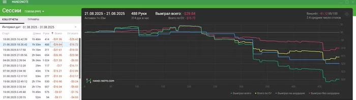 Прикольное вышло 21 августа, я сел за столы, за 1.5 часа сыграл 2-ю по минусовости сессию за месяц