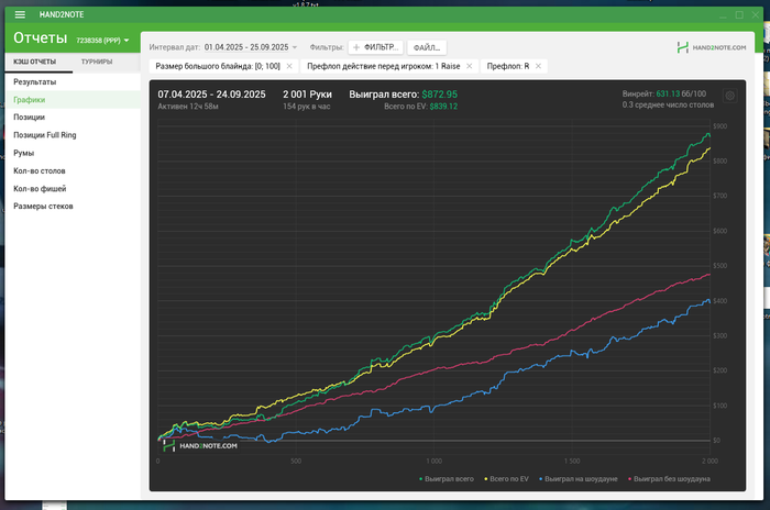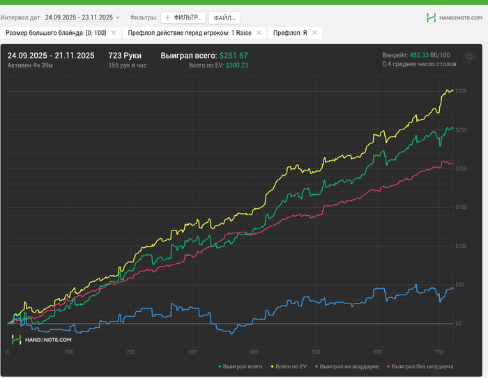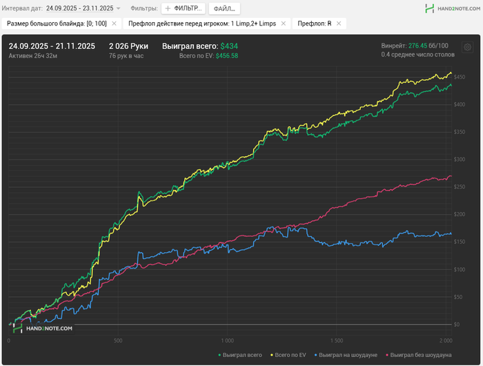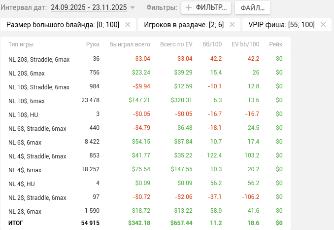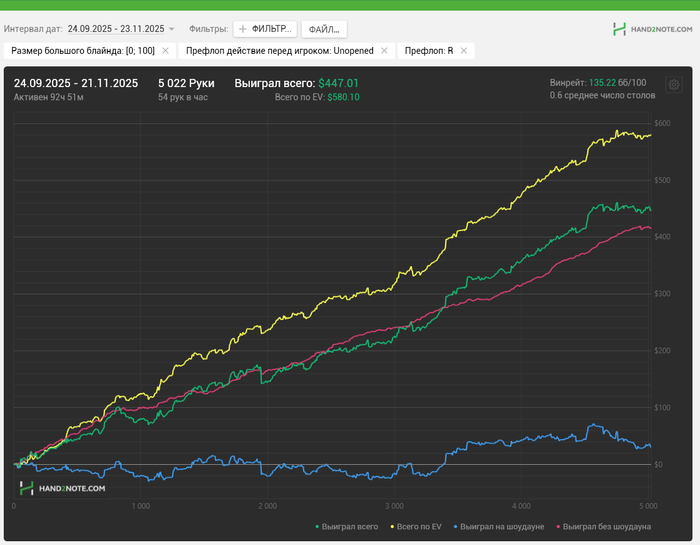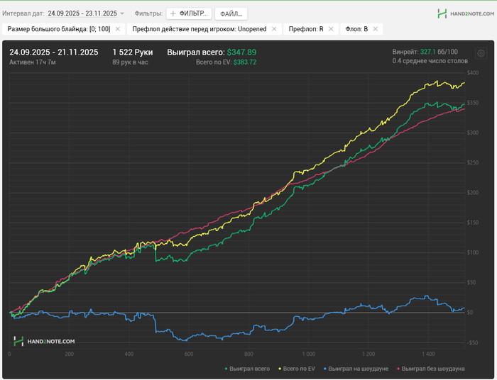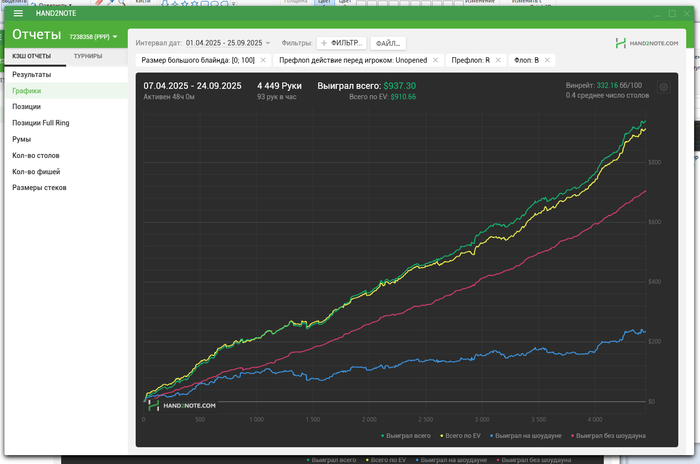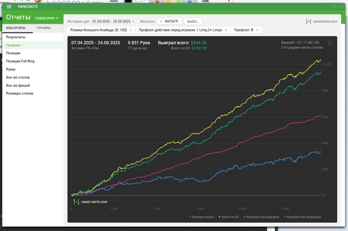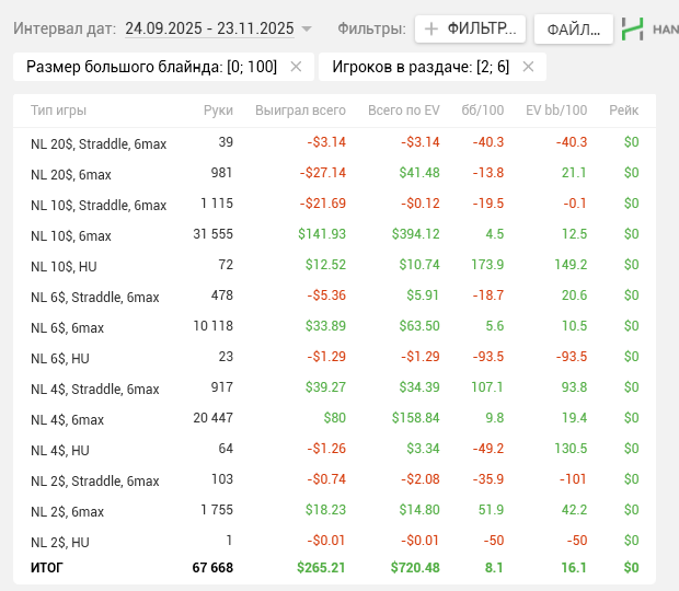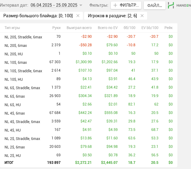 Привет Джипси, немножко поплыл последние дни от недобора - который уже в районе 35-40 среднего моего баина за 25 дней, и проблем с PPP. Мало за этот период наиграно тк тяжело играть в таком ране + у меня какой то баг в PPP, что меня не пускают в вэйт-листы примерно в половине случаев(рандомно), при этом за пустой слот за этим же столом - меня пускают, в Итоге очень трудно набирать катушку - приходится садиться не всегда за те столы - за которые намеревался. Так же в моих клубах почти пропала игра ночью(она конечно есть но не в том обьёме - что была летом, 2 дня как поменял режим, надеюсь частично решится проблема с обьёмом игры. Если кто знает хорошие альтернативы в приложениях, где есть рег столы нл10 с нормальными составами,без ботов, и с возможностью использовать H2n - буду признателен. Так же - если у кого нибудь так же был подобный баг и удалось решить, буду признателен за совет, поддержка ppp помочь мне не смогла.