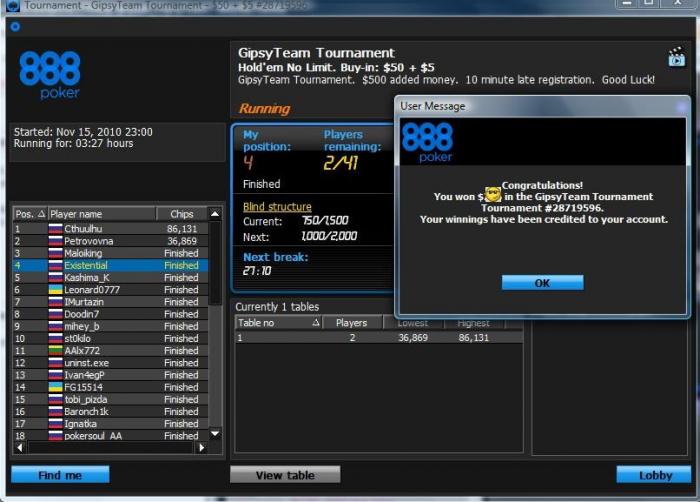 пропив кэшаут из 888 до последнего цента наотмечавшись вдоволь, вернулся в воскр. на (хоть и не "кило") поле битвы. Однако 2-3 дня не то что бы без игры, но даже - без мыслей о покере - дают о себе знать: увидев в "секретном" туре "утку"