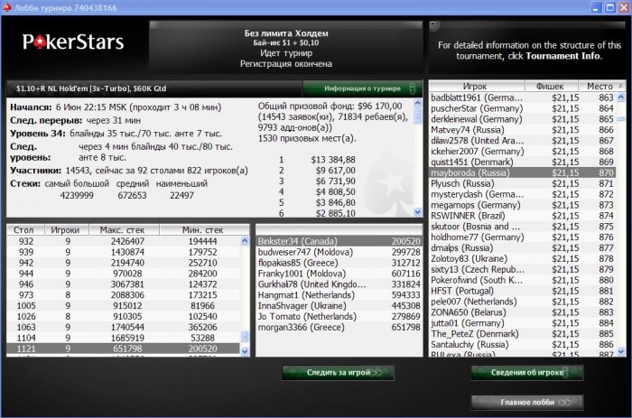 PokerStars Турнир №739151039, Безлимитный Холдем