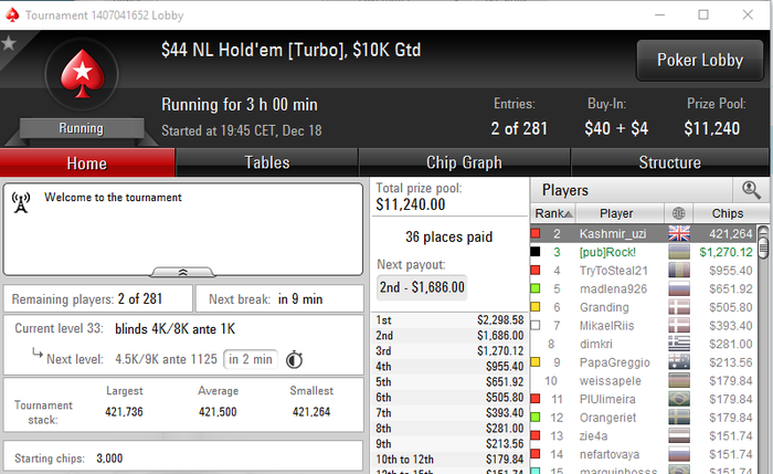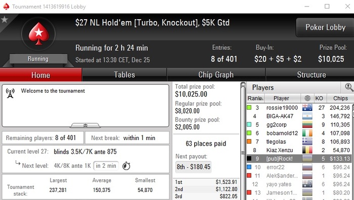 Poker Stars, $40 Buy-in (45/90 blinds, 14 ante) No Limit Hold'em Tournament, 9 Players Poker Tools Powered By Holdem Manager - The Ultimate Poker Software Suite.