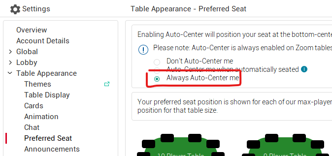 tuatara @ 23.12.2020 Привет. Где нужно нажать чтоб после пересадки за другой стол в турнирах ,новый открывался на том же месте.(PartyCaption)